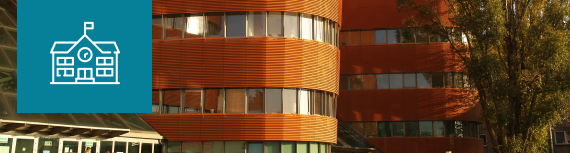 Osobny budynek w obrębie kampusu uczelni z pełnym zapleczem dydaktycznym. Uczniowie korzystają z zasobów akademickich podczas codziennych zajęć.